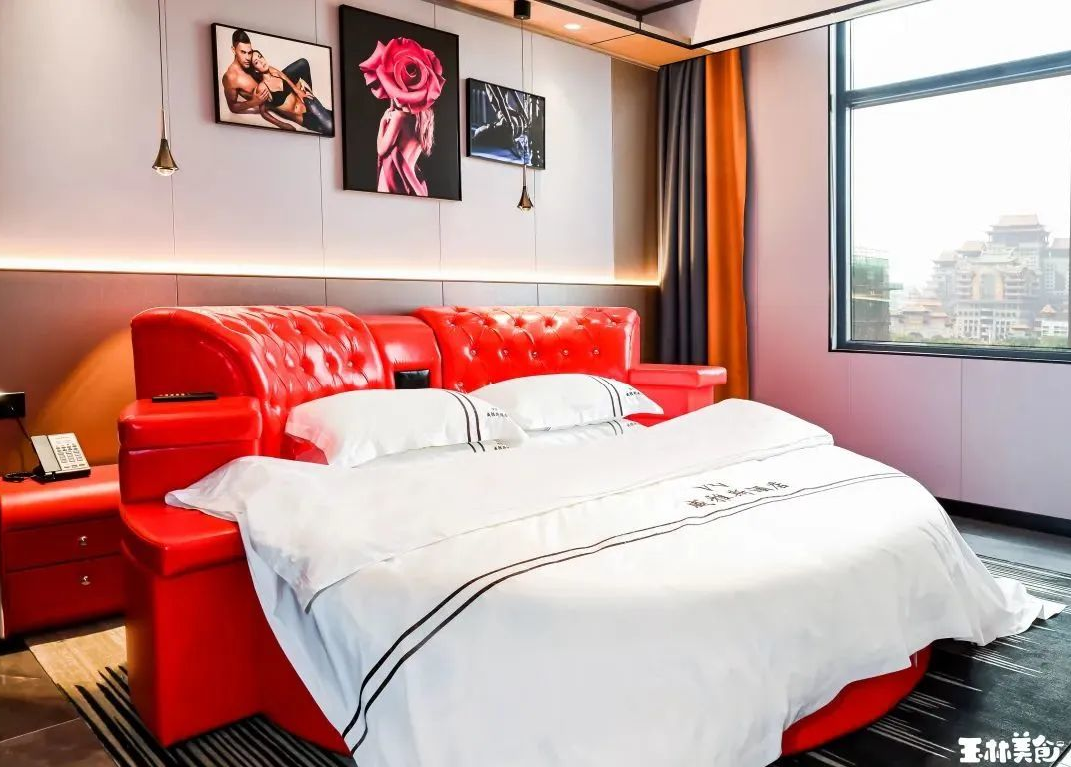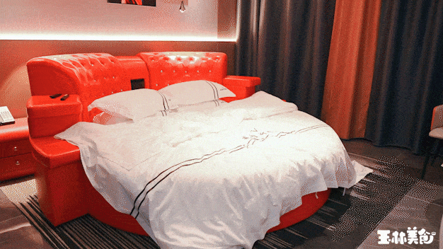 大圆床拥有高档的皮质, 还有舒适的按摩功能